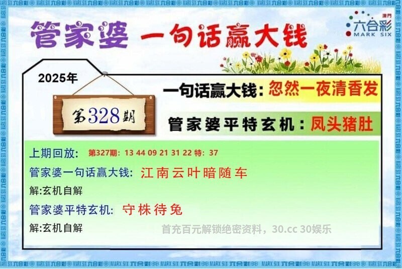 328期管家婆一句话:忽然一夜清香发